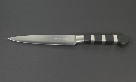 Die feine glatte Klinge der Rückenspitzmesser geht besonders leicht durch das Schneidgut. Dieses Messer eignet sich auf Grund seiner Form und Größe besonders zum Fleisch schneiden. Die dezent zum Rücken der Klinge hin zeigende Spitze macht das Messer ideal zum Schneiden auf dem Brett, denn man kann damit abrollen.
