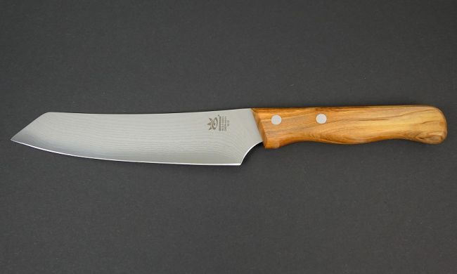 Die zweifach vernieteten Griffe bestehen aus Olivenholz. Dieses Material ist nicht nur besonders wasserresistent und robust, sondern hat auch eine sehr schöne Maserung.