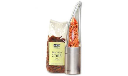 Das perfekte Geschenk für alle Freunde scharfen Essens. Der Chilischneider "Pepe" raspelt mit seinem speziellen Schneidwerk hauchfeine Späne der scharfen Schote. Dazu natürlich die berühmt-berüchtigten Bird's Eye Chili und ein Rezept.
