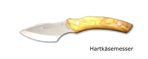 Der bekannteste Vertreter des Hartkäses ist der Parmesan. An diesem Hartkäse ist bereits so manche gute Küchenmesserklinge zerbrochen. Schnell verkantet man in dem zähen Käselaib und nach einem sehr unschönen Pling-Geräusch, hat man nur noch den Griff in der Hand. Hartkäsemesser sind deshalb mit besonders dicken und verwindungssteigen Klingen ausgestattet. Sie sind zumeist kurz und gedrungen, um sich gezielt durch den Hartkäse arbeiten zu können.