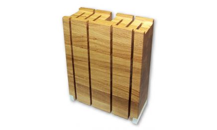 Messerblock aus Eichenholz mit 6 Messerschächten und einen Wetzstahlschacht. Nimmt Messer mit einer Maximallänge von 26 cm auf.