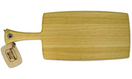 Einige Servier- und Schneidebretter verfügen über ein Loch im Griff, sodass das Brett an einer Schnur platzsparend aufgehängt werden kann.