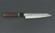 Der traditionelle Steckgriff besteht aus Pakkaholz und hat eine Hexagonform. Was etwas kantig anmutet liegt sehr gut und kontrolliert in der Hand. Auf der oberen Seite ist eine Schmuckniete eingebracht. Die Zwinge ist am Übergang zur Klinge geschlossen und somit hygienisch absolut einwandfrei.