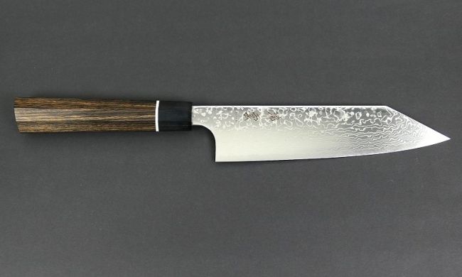 Die Kanetsugo „Zuiun“ Serie ist eines der Flaggschiffe des Unternehmens. Hier kommt der momentan bestmögliche Stahl zum Einsatz. Ein pulvermettalurgisch hergestellter SPG2-Stahl (rostfrei) . Ein hochreines Material mit nahezu optimaler Metallgitterstruktur. Er lässt sich locker auf 64 HRC härten, ohne an Zähigkeit zu verlieren. Das verschleißarme Material kann auf Grund dieser enormen Härte extrem fein ausgeschliffen werden. Als äußeres Stützmaterial fungiert ein 62lagiger Damast.